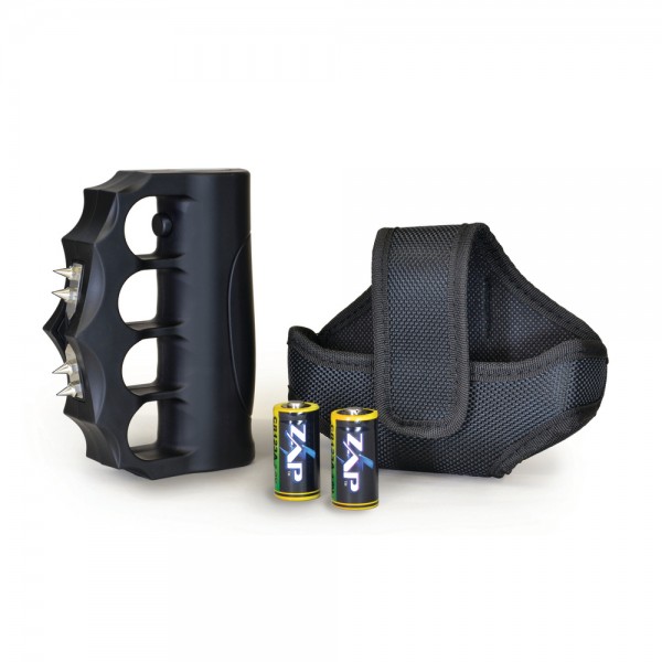 KNUCKLE BLAST EXTREME is a 950,000 volt stun gun designed to give you a punch with POWER. This stun gun is designed for quick one-handed use and features a convenient thumb activated safety switch. Plus, it has 4 new ultra sharp spikes for extra protection!